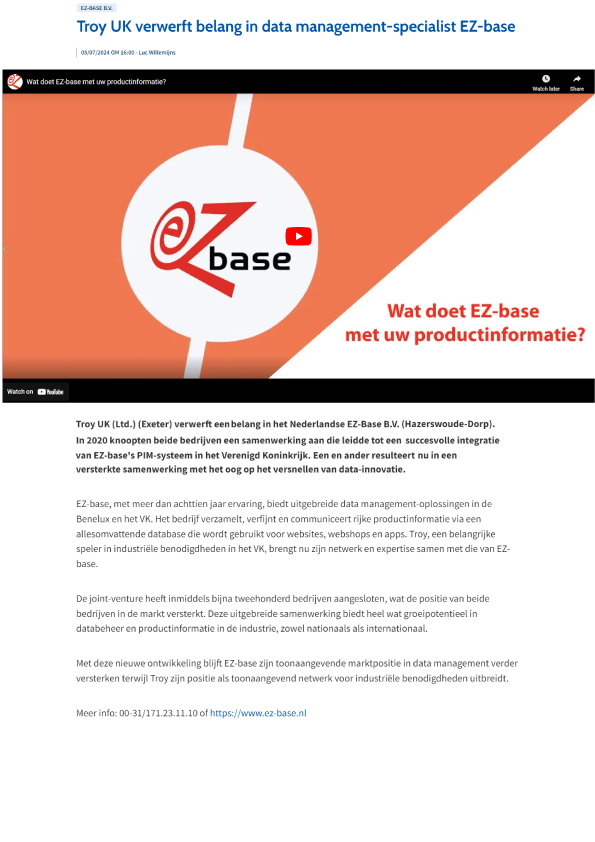 “Troy UK verwerft belang in data management-specialist EZ-base”